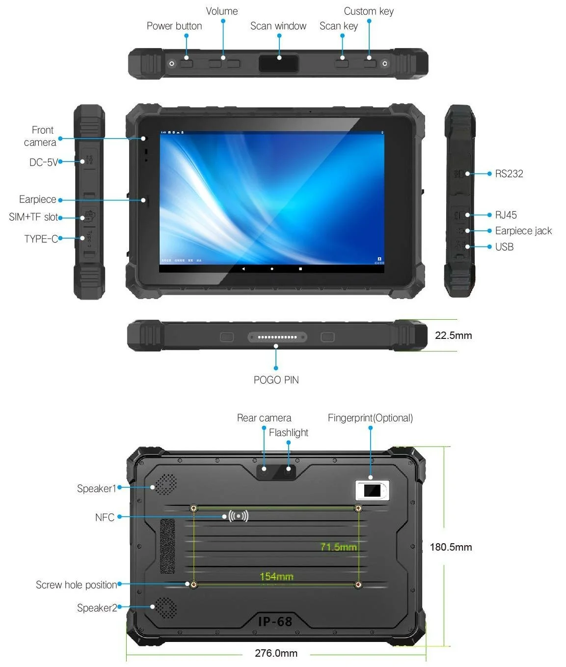 With available addons including barcode scanner, front and rear cameras, WiFi, 4G Data, GPS and RTK, Bluetooth, Fingerprint Scanner, Serial Port as well as LF, HF and UHF RFID and NFC the data you need to collect can be carried out easily.