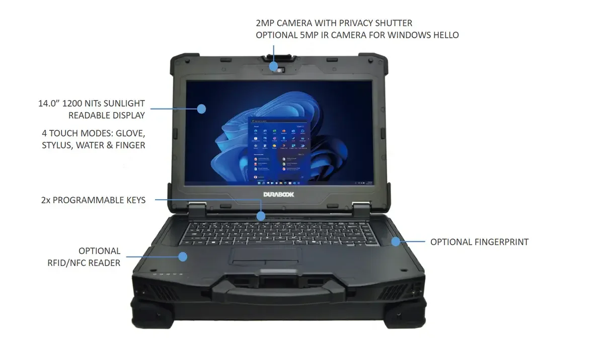 Built to operate where conventional systems cannot, the Z14I-HG meets MIL-STD-810H and MIL-STD-461G standards and carries an IP66 rating for protection against dust, heavy rain, vibration, shock, and electromagnetic interference. Its 14.0-inch FHD DynaVue® sunlight-readable display with 1200 nits brightness ensures exceptional clarity even under direct sunlight.